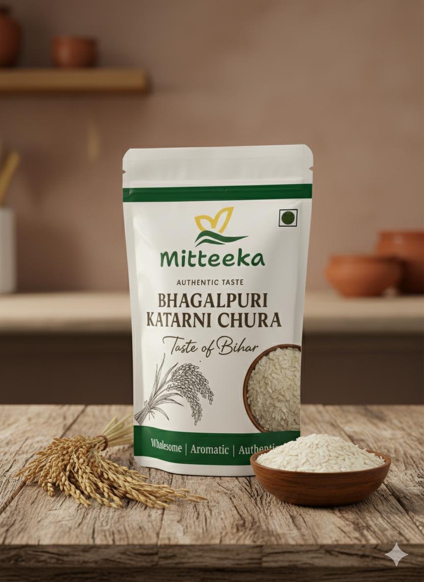 Bring home the unmatched taste of Biharโs heritage with Mitteekaโs pure Bhagalpuri Katarni Chura, made from the finest Katarni rice โ a grain treasured for its fragrance and delicate texture.